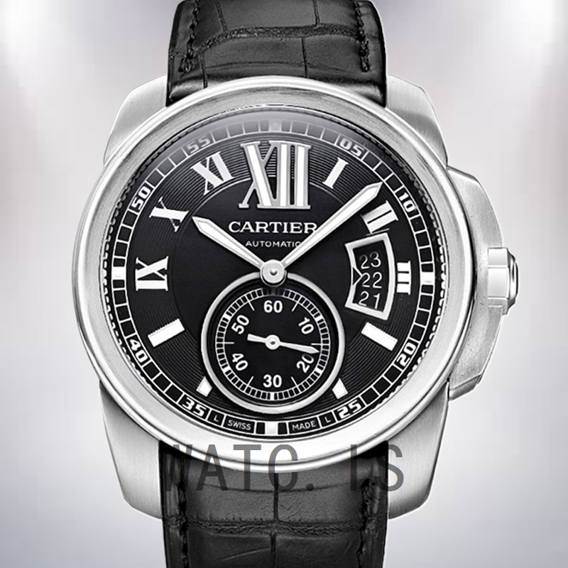 Cartier Calibre 42mm Men's W7100041 Leather Strap Black Dial