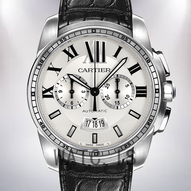 Cartier Calibre 42mm Men's W7100045 Silver White Dial Silver-tone