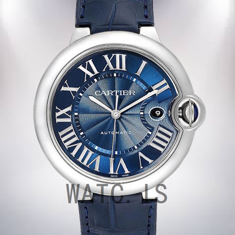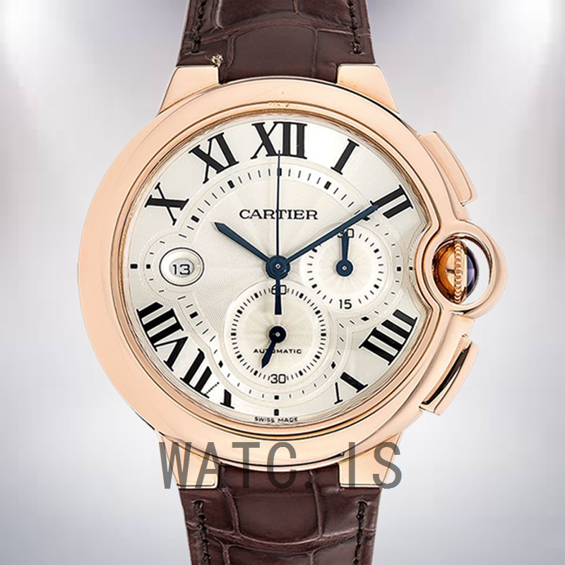 Cartier Ballon Bleu W6920009 47mm Men's Silver Dial Leather Strap