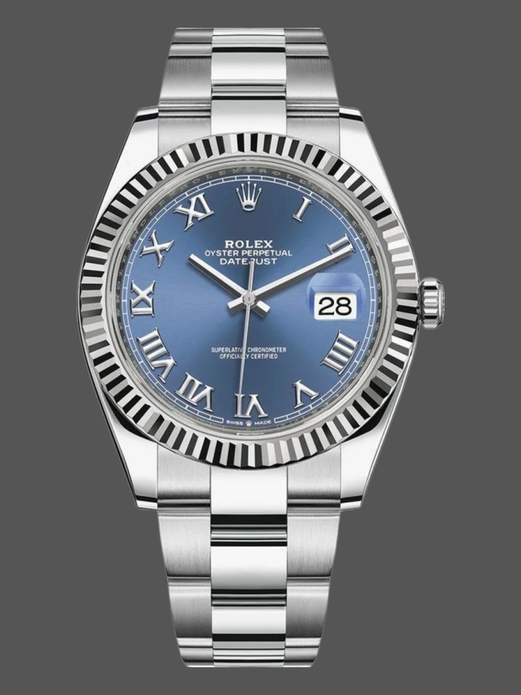 Rolex Datejust 126334 Fluted Bezel Grey Wimbledon Dial 41MM Mens Replica Watch