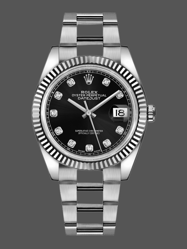 Rolex Datejust 126334 Fluted Bezel Black Diamond Dial 41MM Mens Replica Watch