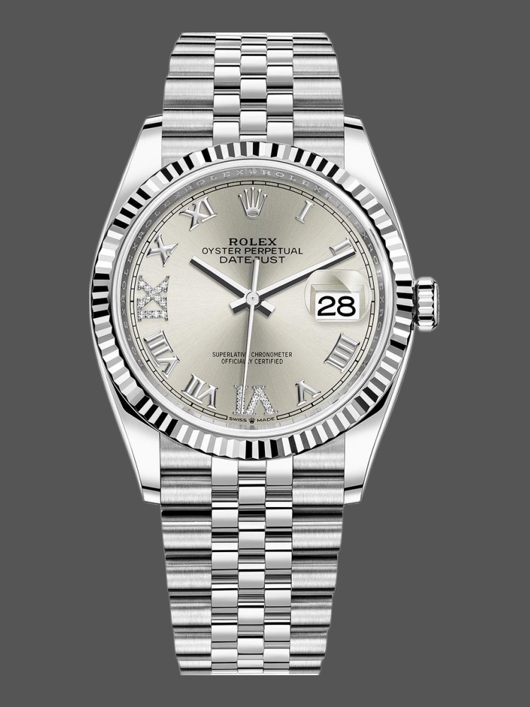 Rolex Datejust 126234 Silver Diamond Roman Dial 36MM Unisex Replica Watch