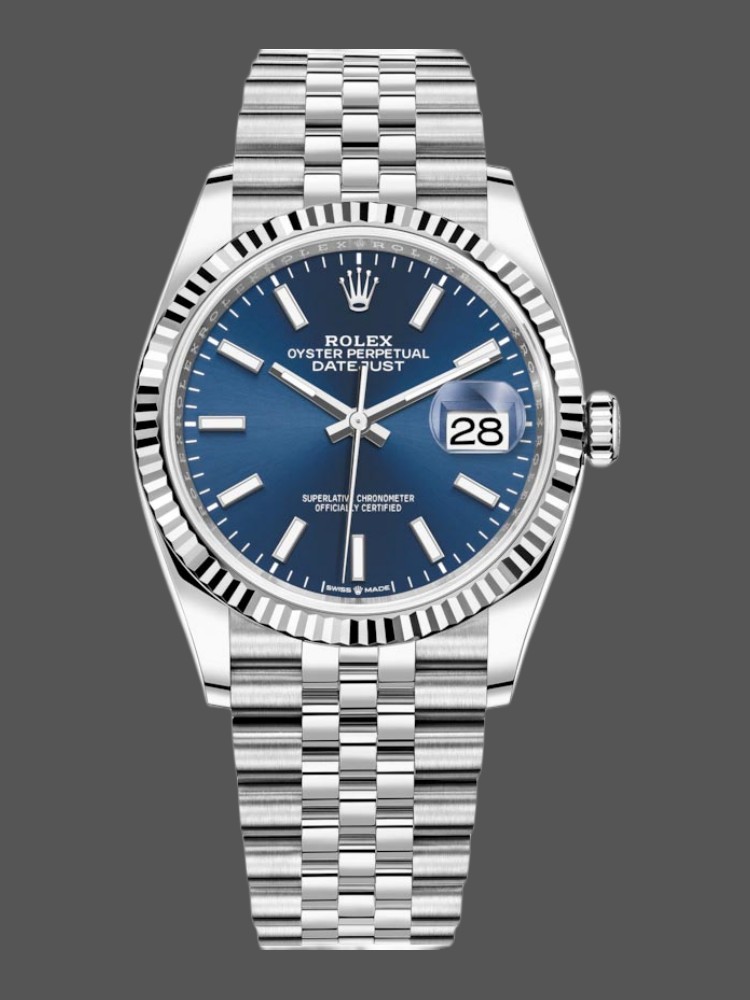 Rolex Datejust 126234 Blue Index Dial Fluted Bezel 36MM Unisex Replica Watch