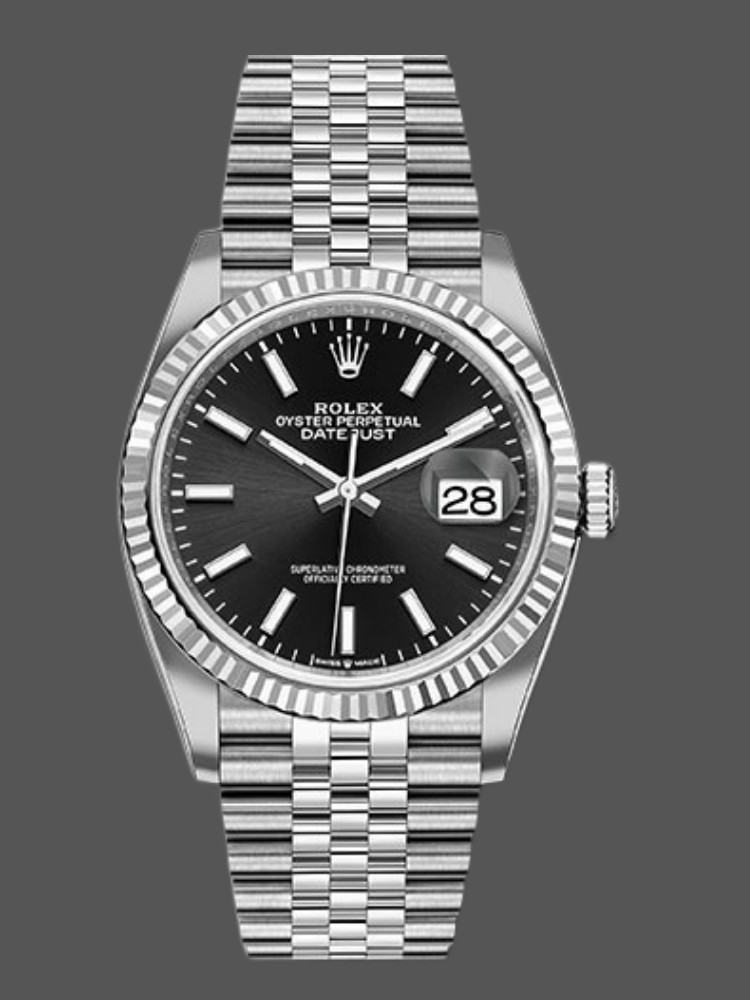 Rolex Datejust 126234 Fluted Bezel Black Index Dial 36MM Unisex Replica Watch