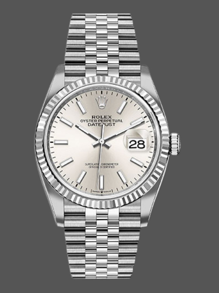 Rolex Datejust 126234 Fluted Bezel Silver Index Dial 36MM Unisex Replica Watch