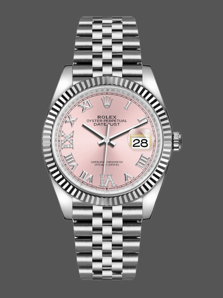 Rolex Datejust 126234 Fluted Bezel Pink Roman Dial 36MM Unisex Replica Watch
