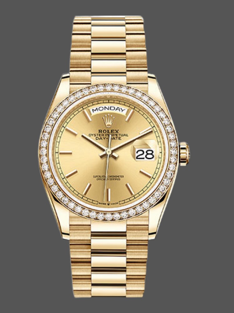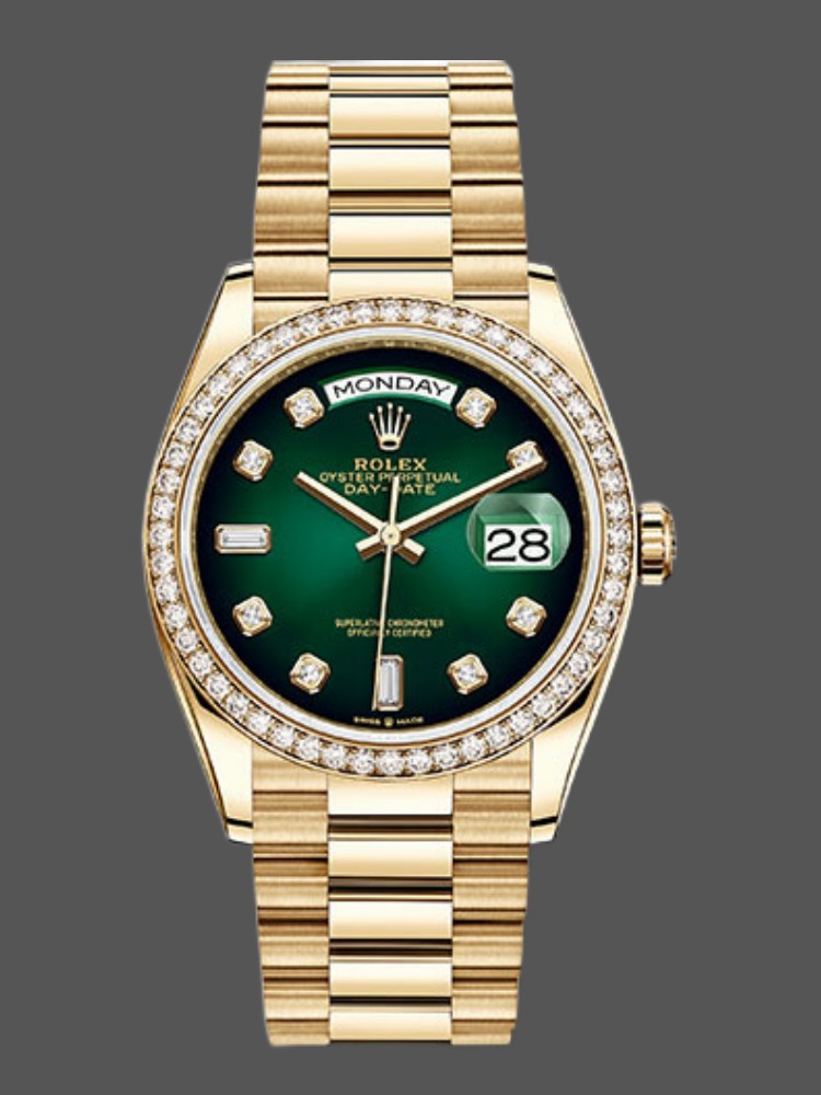 Rolex Day Date 128348RBR MOP Yellow Gold 36MM Unisex Replica Watch