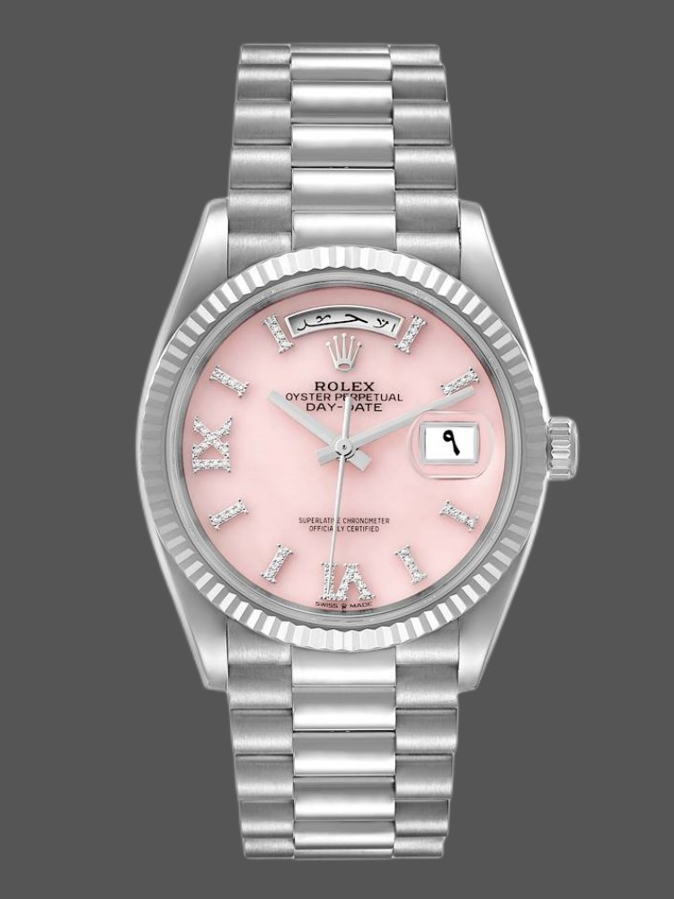 Rolex Day-Date 128239 White Gold Pink Opal Dial 36MM Unisex Replica Watch