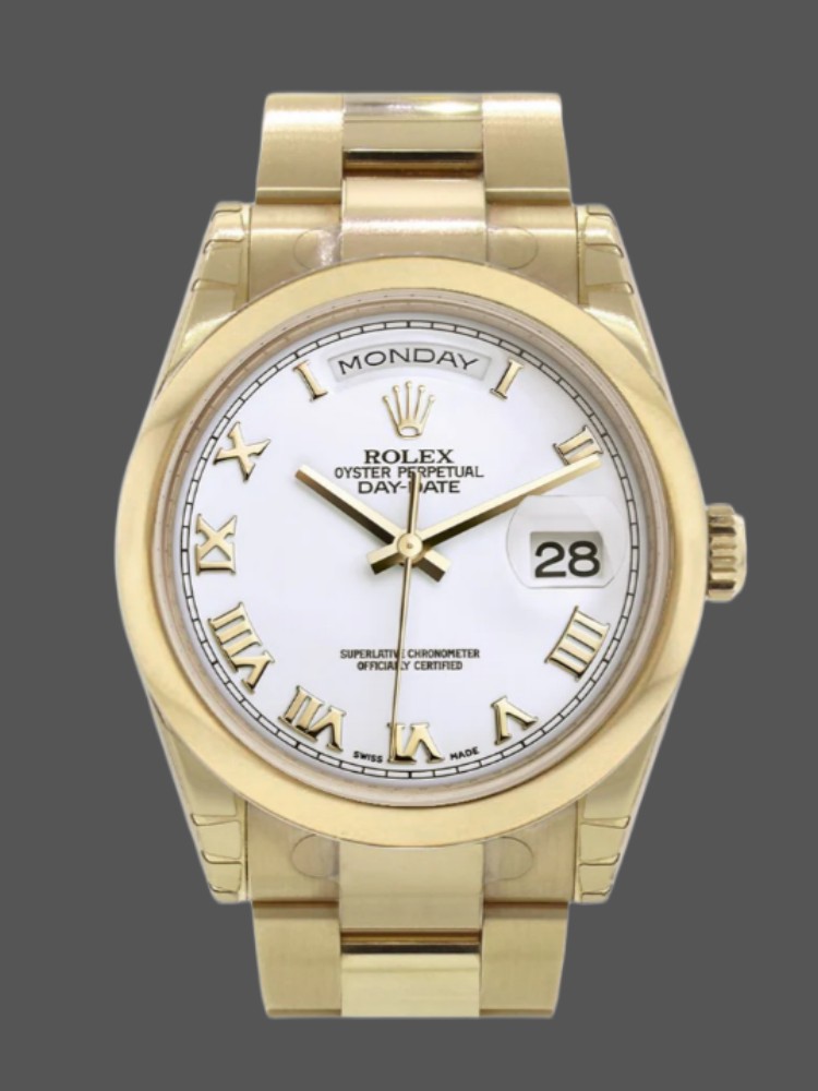 Rolex Day-Date 118208 White Roman Dial Roman Numerals 36mm Unisex Replica Watch