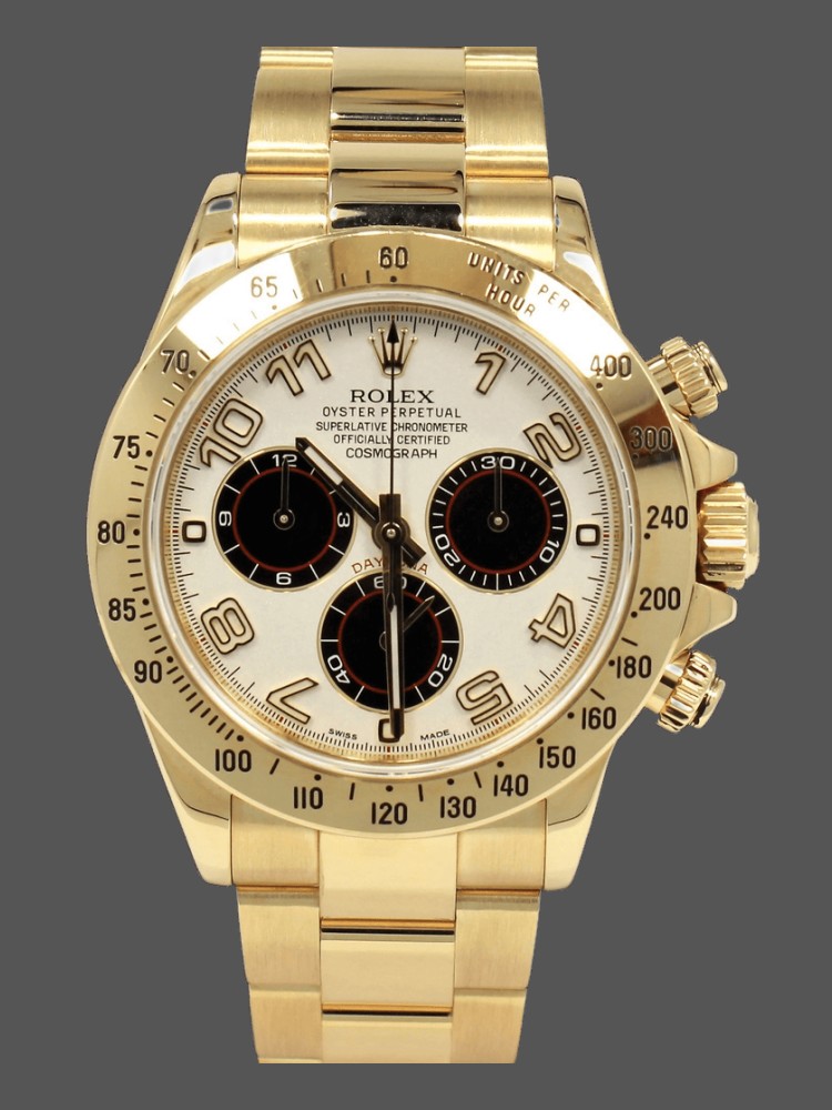 Rolex Daytona 116528 White Arabic Dial Yellow Gold 40mm Mens Replica Watch