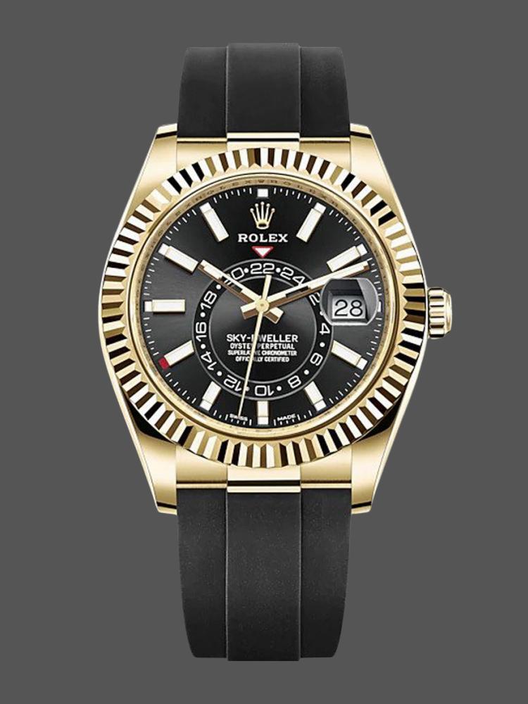 Rolex Sky Dweller 326238 Yellow Gold Black Dial 42mm Mens Replica Watch