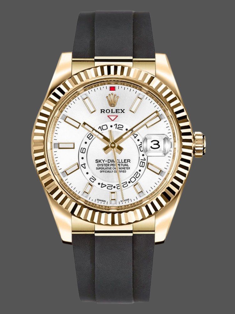Rolex Sky Dweller 326238 Yellow Gold White Dial 42mm Mens Replica Watch