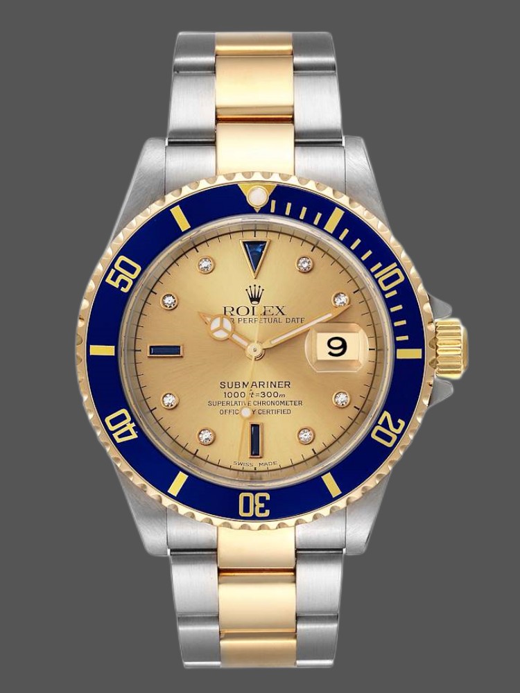 Rolex Submariner Date 16613 Champagne Serti Dial 40mm Mens Replica Watch