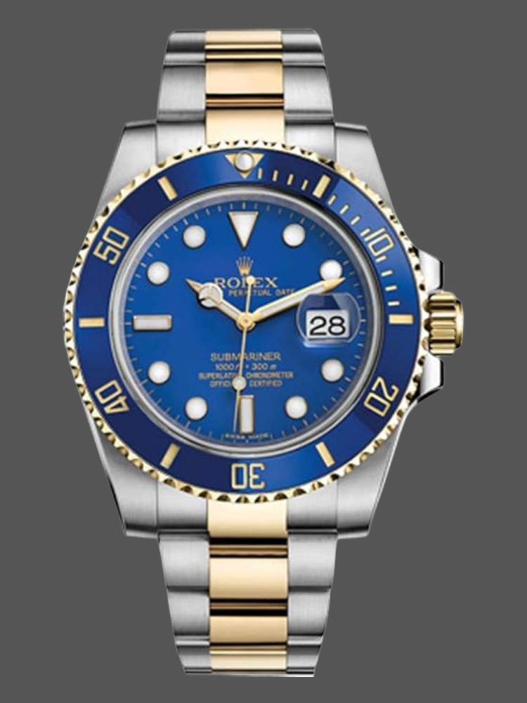 Replica Rolex Submariner Date 116613LB Two Tone Blue Dial 40mm Mens Watch